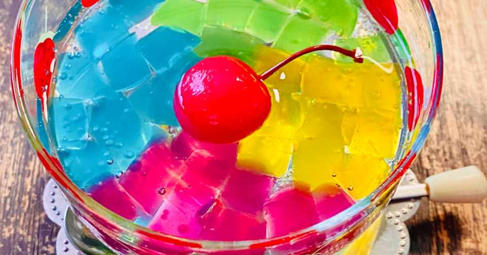 駄菓子アレンジレシピ こんにゃくゼリーでカラフルゼリーポンチ 鳩 頭巾 Note