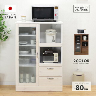 熱販売 在庫大特価 食器棚 レンジ台 完成品 完成品 幅80cm ロータイプ 引き出し付き キッチン収納棚 引き出し付き ホワイト ロータイプ 白 ブラウン
