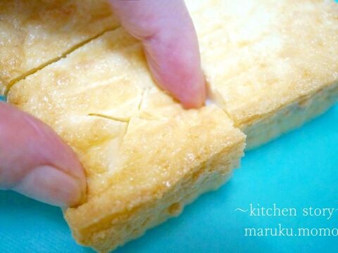 揚げ焼きするだけ 豆腐で簡単自家製厚揚げ レシピ 作り方 By 白いエプロンのクマ クックパッド