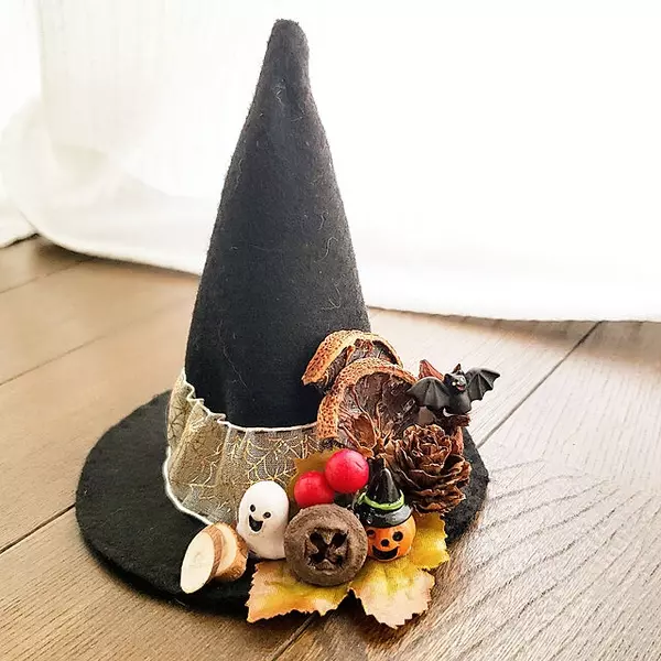 親子で楽しく作れる簡単ハロウィングッズ 魔法使いの帽子の髪飾りと魔法使いの箒 のんびりにっこりハンドメイド